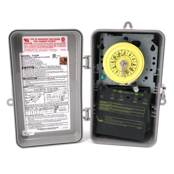 T103P - 24-Hour Mechanical Time Switch, 120 VAC, 60Hz, DPST, Indoor/Outdoor Plastic Enclosure, 1 Hour Interval