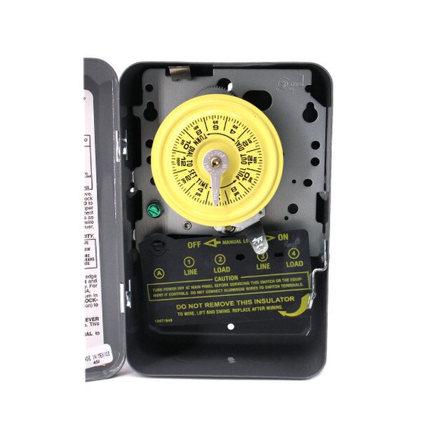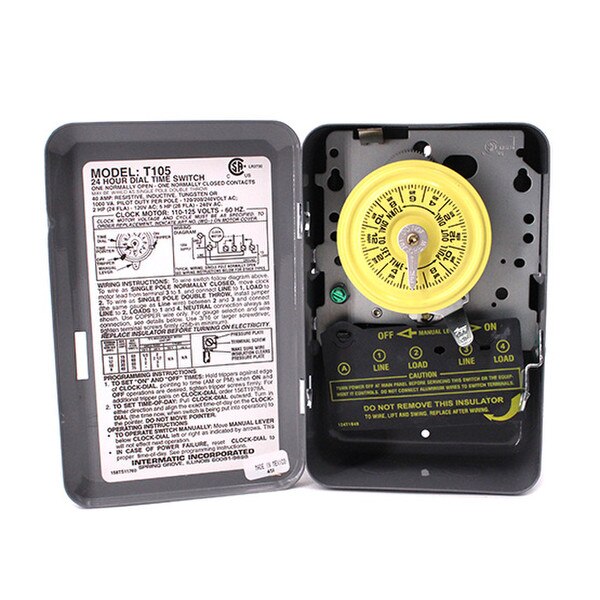T105 - 24-Hour Mechanical Time Switch, 120 VAC, 60Hz, 1 NO/1 NC, SPDT, Indoor Metal Enclosure, 1 Hour Interval