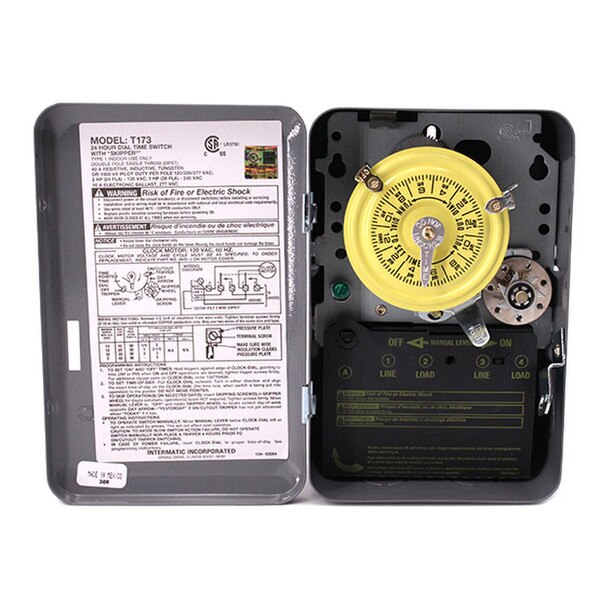 T173 - 24-Hour Mechanical Time Switch with Skip-a-Day, 120 VAC, 60Hz, DPST, Indoor Metal Enclosure, 1 Hour Interval