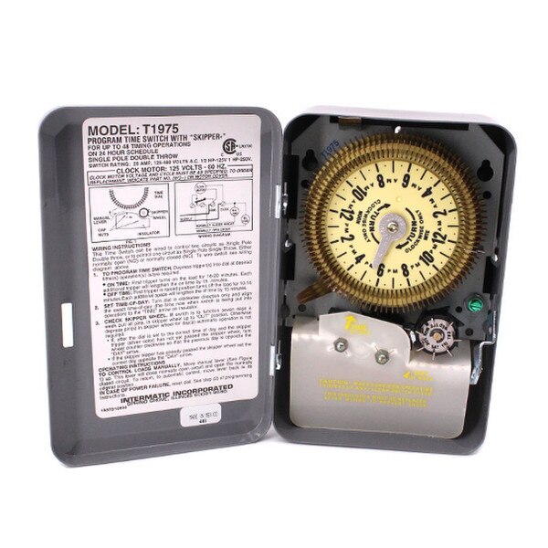 T1975 - 24-Hour Mechanical Time Switch with Skip-a-Day, 125 VAC, 60Hz, SPDT, Indoor Metal Enclosure, 15 Minute Interval ***Closeout Item***